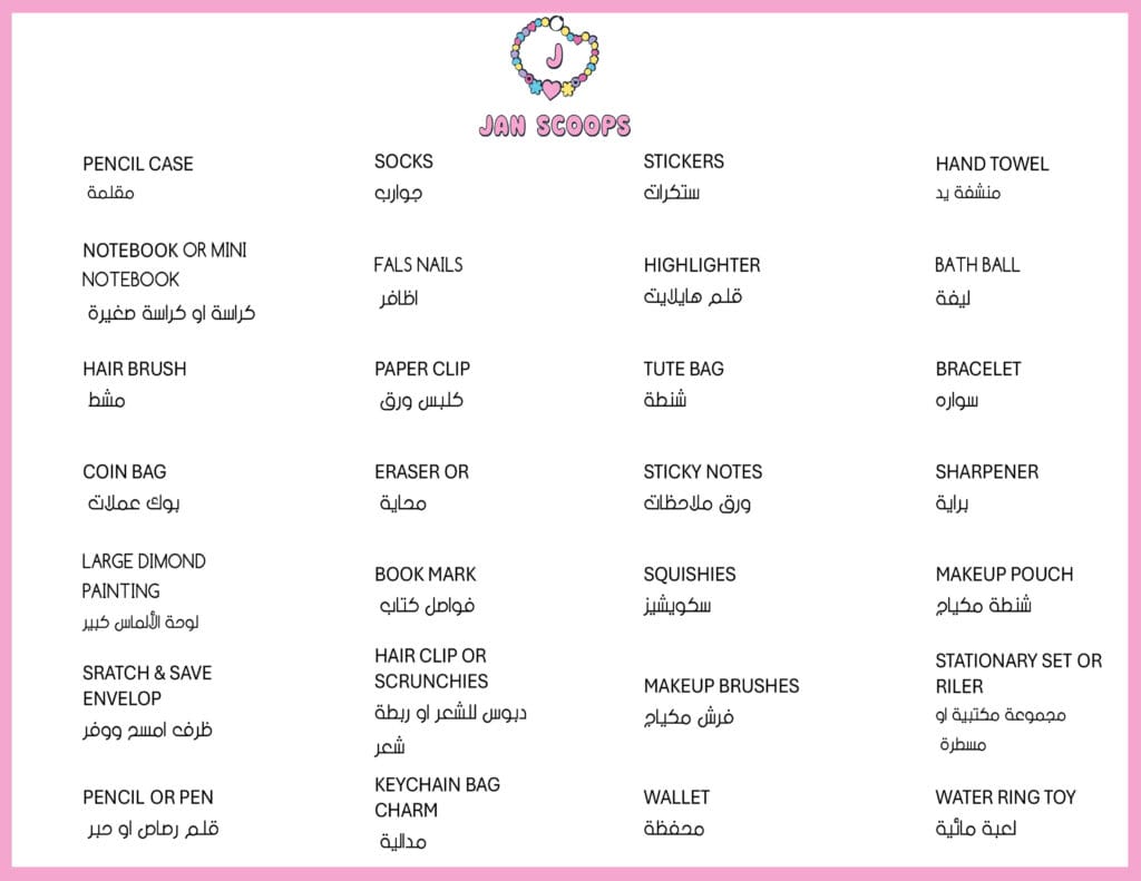 JAN SCOOPS استمتع بـ "السكووبات اللطيفة " المليئة بأكثر من 10 مفاجآت! كل سكوب يحتوي على تشكيلة متنوعة من الادوات المختلفة المثالية للاستخدام اليومي.✨ اكتشف سكوبك الآن