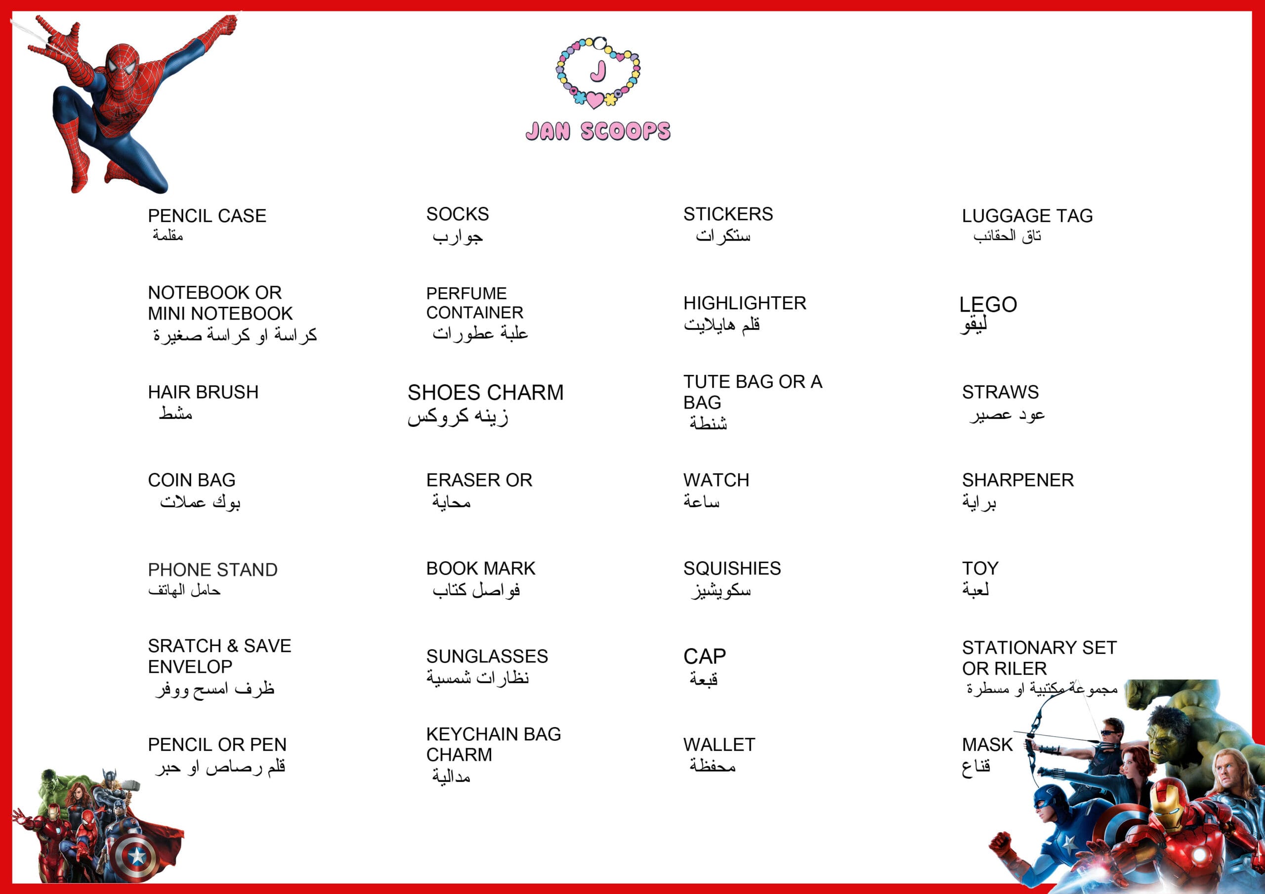 المنتجات عبارة عن ادوات مدرسية ومحافظ والعاب لشخصيات كرتونية
